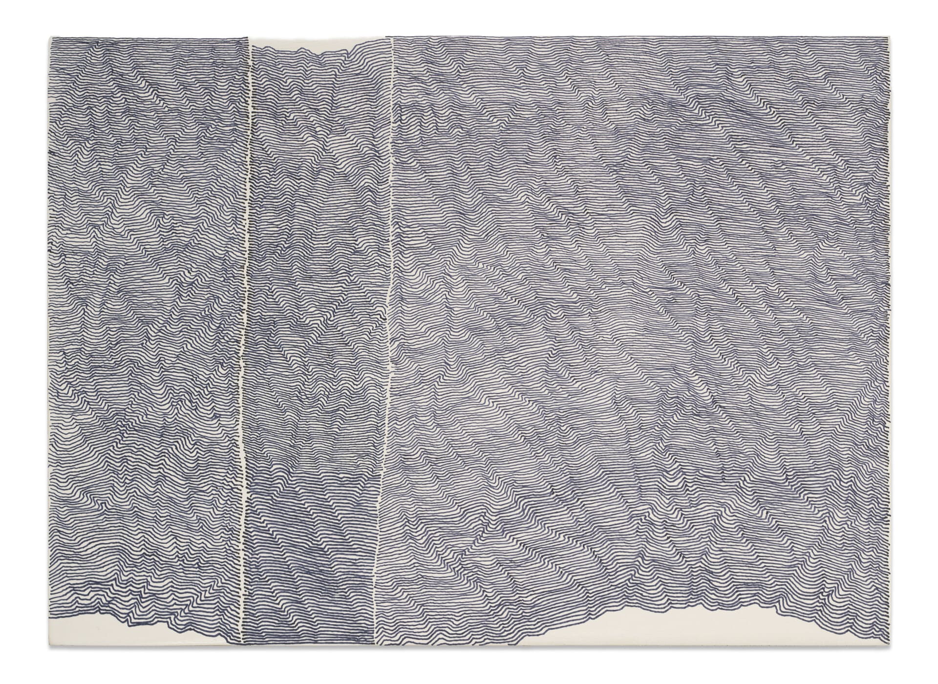 To follow the artist’s activity in the studio is one layer through which we may perceive and situate his works within our own world. The result, the finished painting, forms a second layer. Though the painting reveals its individual lines, these converge into a structured surface in which the tremors and minor inaccuracies of each drawn gesture merge into an overall image – a kind of recording of seismic vibrations. Or are they recordings of thought, emotion, of the artist’s psychic state while at work? Are these the Headnotes?