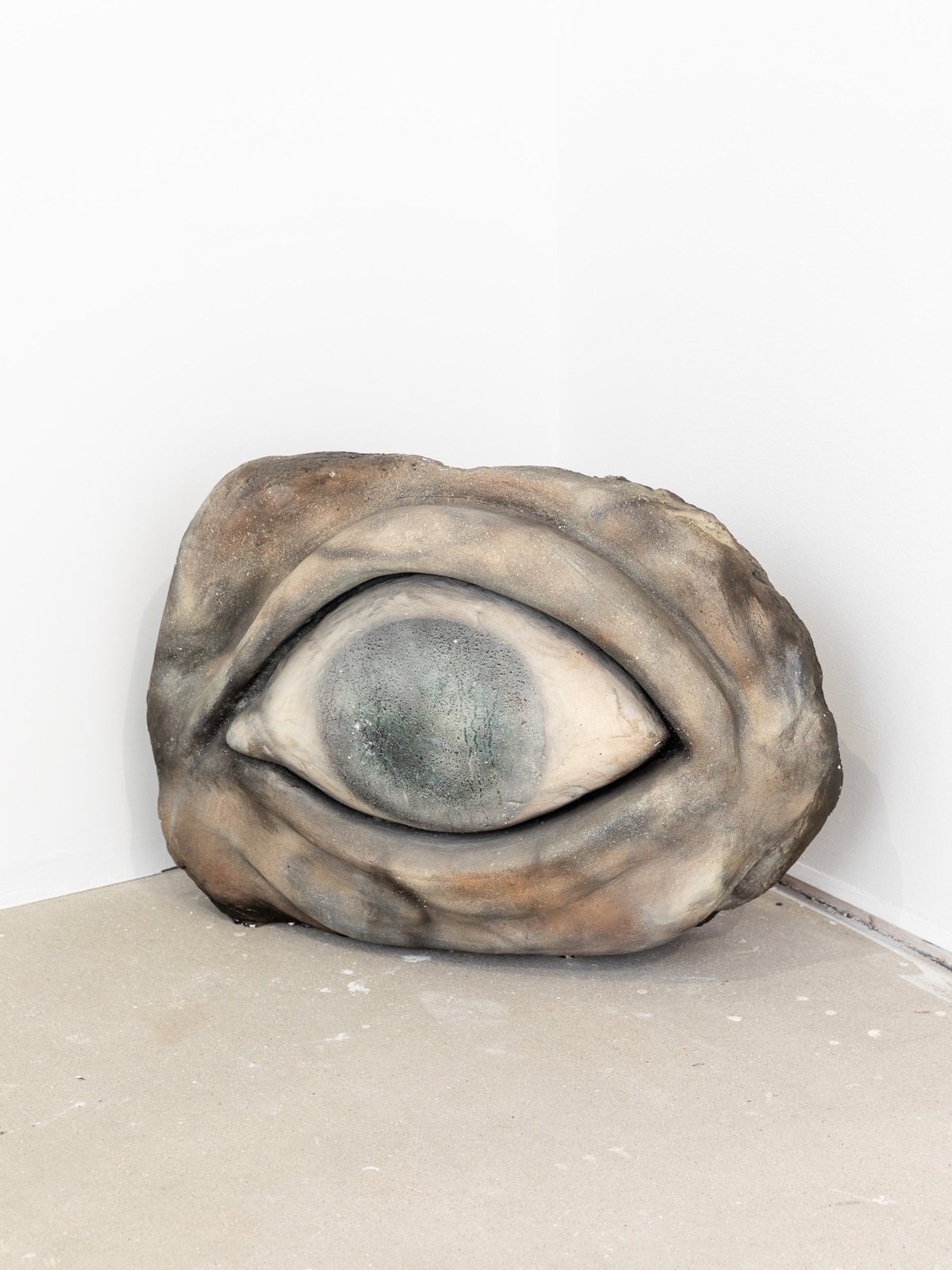Hortensia Mi Kafchin’s spectral tales stage the missing sex of the ghost, populated by robots and witches, a reminder of how gender persists even when flesh dissolves, while Larisa Sitar anchors memory in concrete limbs, balancing on the edges of history. Hadassah Emmerich’s oil paintings, with their controlled and mesmerizing shapes, render fragmented anatomies as a multiplying presence that feels both sheltered and at risk. Apparatus 22 punctuates the room with neon fictions and textual erasures that expose the violence of world-making, whereas Christian Jankowski conjures the body swallowed whole, crocodilian and comic, undoing the art world’s pretense of safety. Luca Florian pursues Georges Bataille’s acéphalic horror in reverse, terror vibrating bomb-like as dismembered sound, referencing both war and a distant past of art’s history, while Rebekka Ana Aime lets abstraction fall into commemoration, tender pieces of what can no longer be held. Wirz turns again with a neck exposed, Klara Zetterholm suspends the missing gaze in transit, Kristin Wenzel lends a tongue to the orchid’s strange speech, John Arnold salts the wound of matter, and Giuliano Nardin’s mermaid surfaces with absent legs, drifting between oceanic promise and terrestrial loss. The exhibition gathers these gestures without closure. Ghosts insist that art is a threshold where bodies scatter and futures hesitate. Yet unfinished presences press on, holding open what is not yet gone.