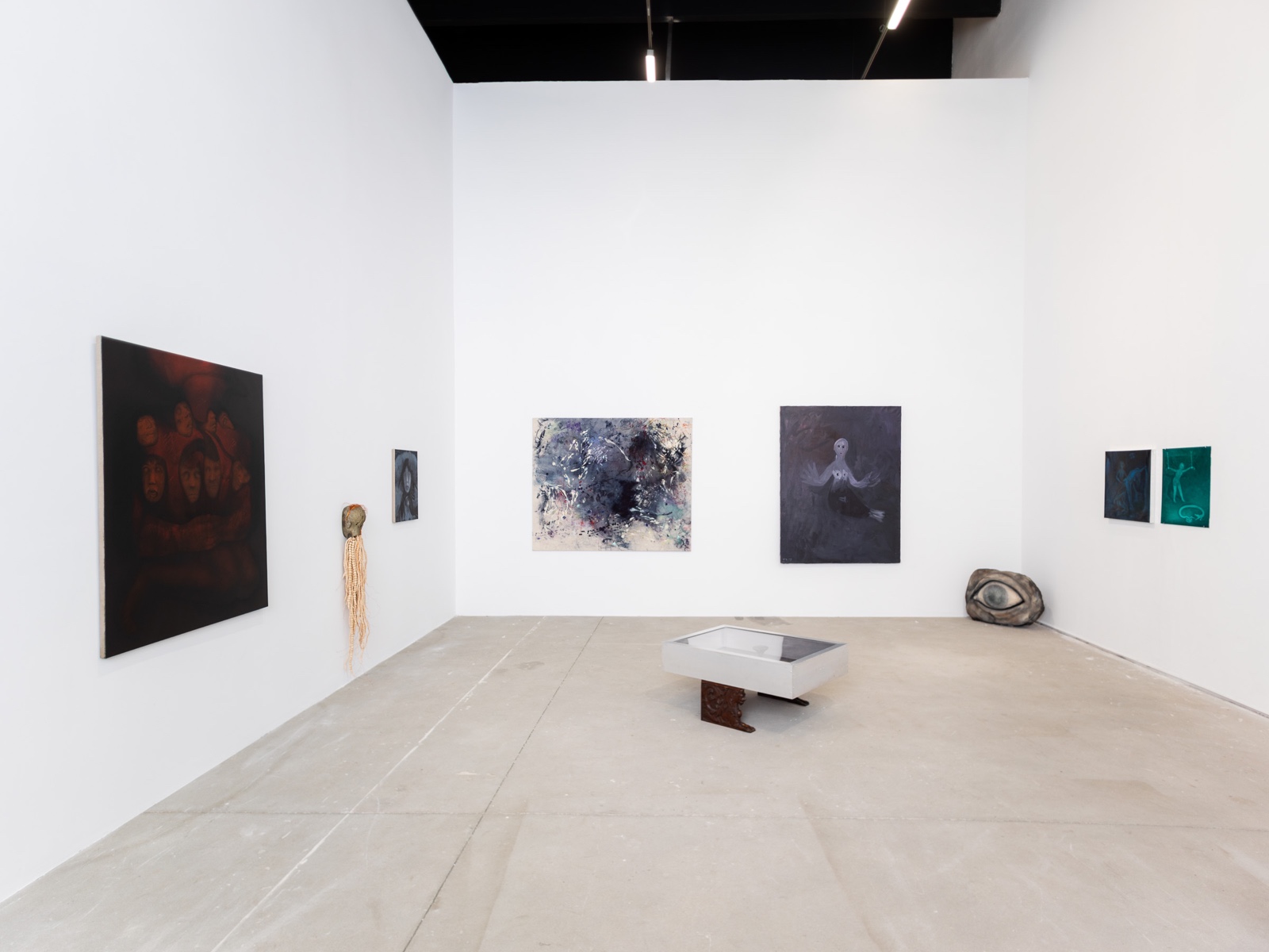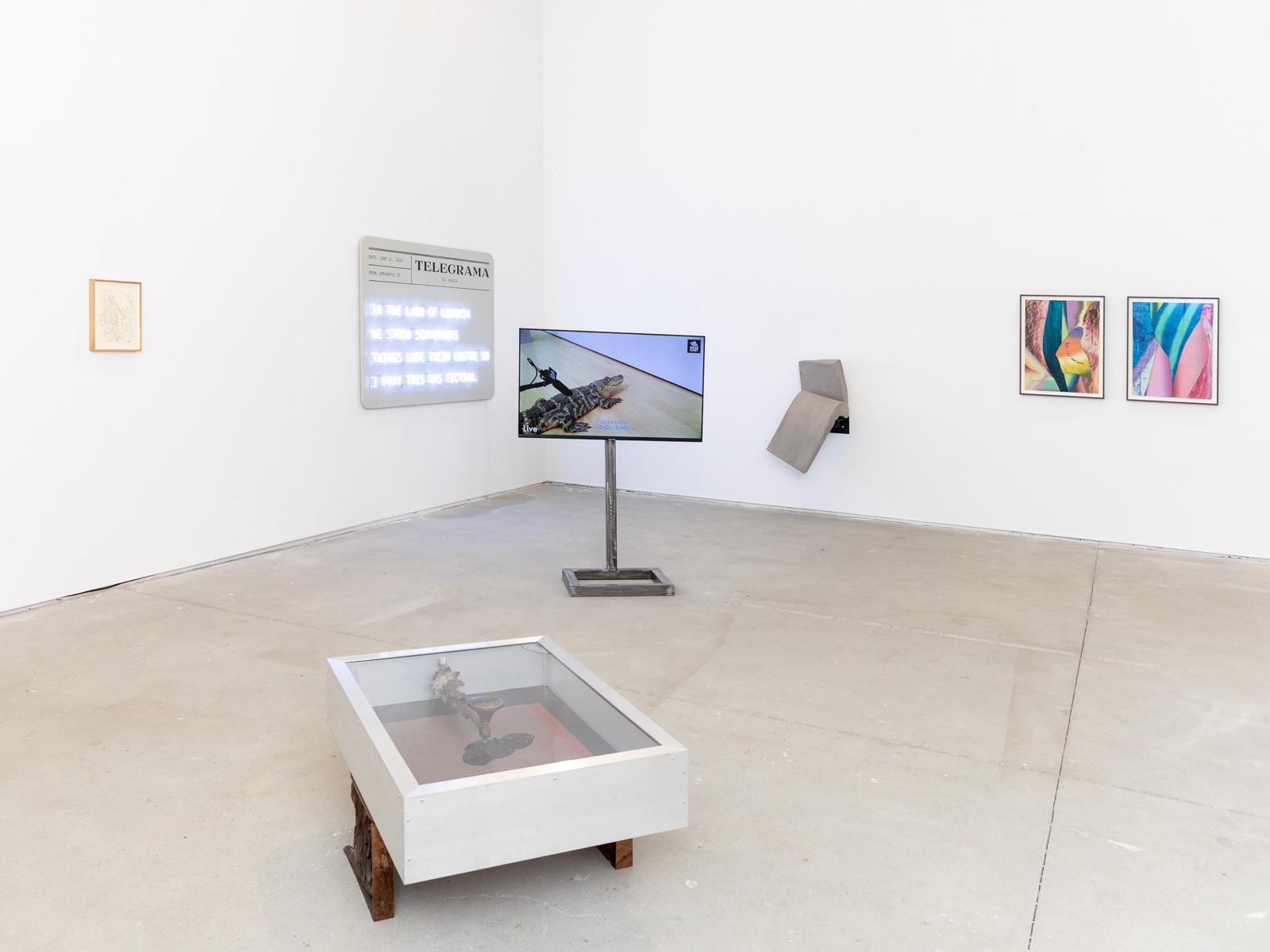Hortensia Mi Kafchin’s spectral tales stage the missing sex of the ghost, populated by robots and witches, a reminder of how gender persists even when flesh dissolves, while Larisa Sitar anchors memory in concrete limbs, balancing on the edges of history. Hadassah Emmerich’s oil paintings, with their controlled and mesmerizing shapes, render fragmented anatomies as a multiplying presence that feels both sheltered and at risk. Apparatus 22 punctuates the room with neon fictions and textual erasures that expose the violence of world-making, whereas Christian Jankowski conjures the body swallowed whole, crocodilian and comic, undoing the art world’s pretense of safety. Luca Florian pursues Georges Bataille’s acéphalic horror in reverse, terror vibrating bomb-like as dismembered sound, referencing both war and a distant past of art’s history, while Rebekka Ana Aime lets abstraction fall into commemoration, tender pieces of what can no longer be held. Wirz turns again with a neck exposed, Klara Zetterholm suspends the missing gaze in transit, Kristin Wenzel lends a tongue to the orchid’s strange speech, John Arnold salts the wound of matter, and Giuliano Nardin’s mermaid surfaces with absent legs, drifting between oceanic promise and terrestrial loss. The exhibition gathers these gestures without closure. Ghosts insist that art is a threshold where bodies scatter and futures hesitate. Yet unfinished presences press on, holding open what is not yet gone.